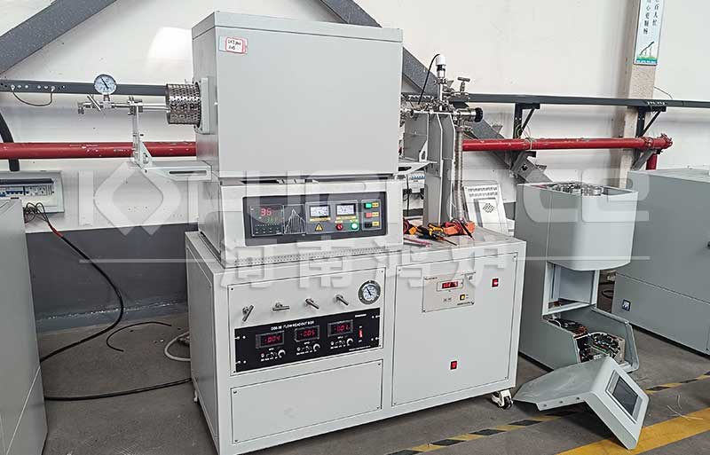 多路混气管式炉是在传统管式炉基础上,集成多路气体输送、流量控制和混合装置的增强型系统。其核心特征包括:通过多气体流量控制器(MFC)按预设比例混合惰性气体(如氮气、氩气)、还原性气体(如氢气)或反应性气体(如氧气),混合气体通入炉管后,加热系统提供反应所需温度,实现材料在特定气氛下的合成、烧结、退火等工艺。例如,锂电池正极材料磷酸铁锂的合成需在惰性气氛中避免氧化,多路混气管式炉可精准控制氮气与微量氧气的混合比例,确保反应环境稳定。